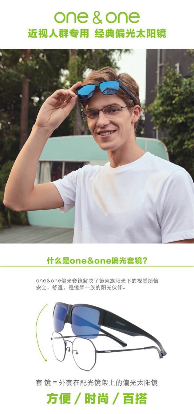 one&one的偏光套镜让近视人群可以轻松享受阳光视觉,解决近视人群的视觉烦恼。在线下占据近视太阳镜绝大部分的市场,是近视人群不可或缺的功能产品。