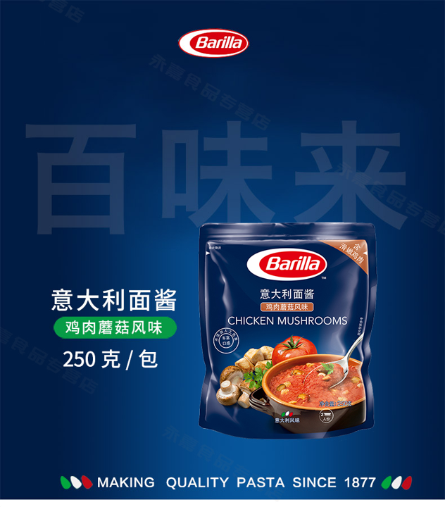 Barilla百味来是来自意大利的食品品牌,至今有着百年以上的历史,其拳头产品就是生产的意大利面类食品。这款番茄罗勒风味意大利面酱由美味番茄,芳香罗勒和各种精选当地食材混合制成,味道鲜爽芳香可搭配各类意面。