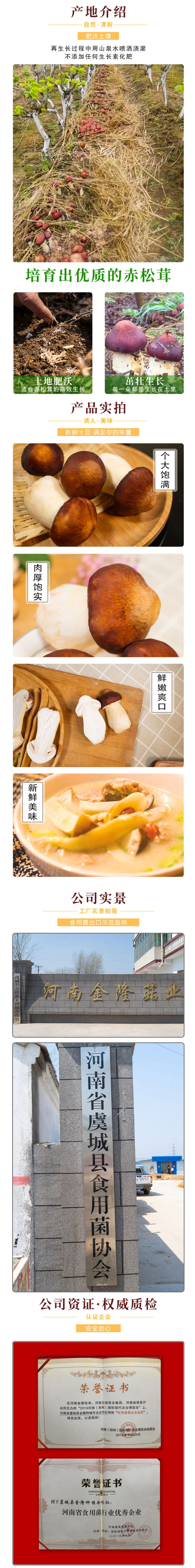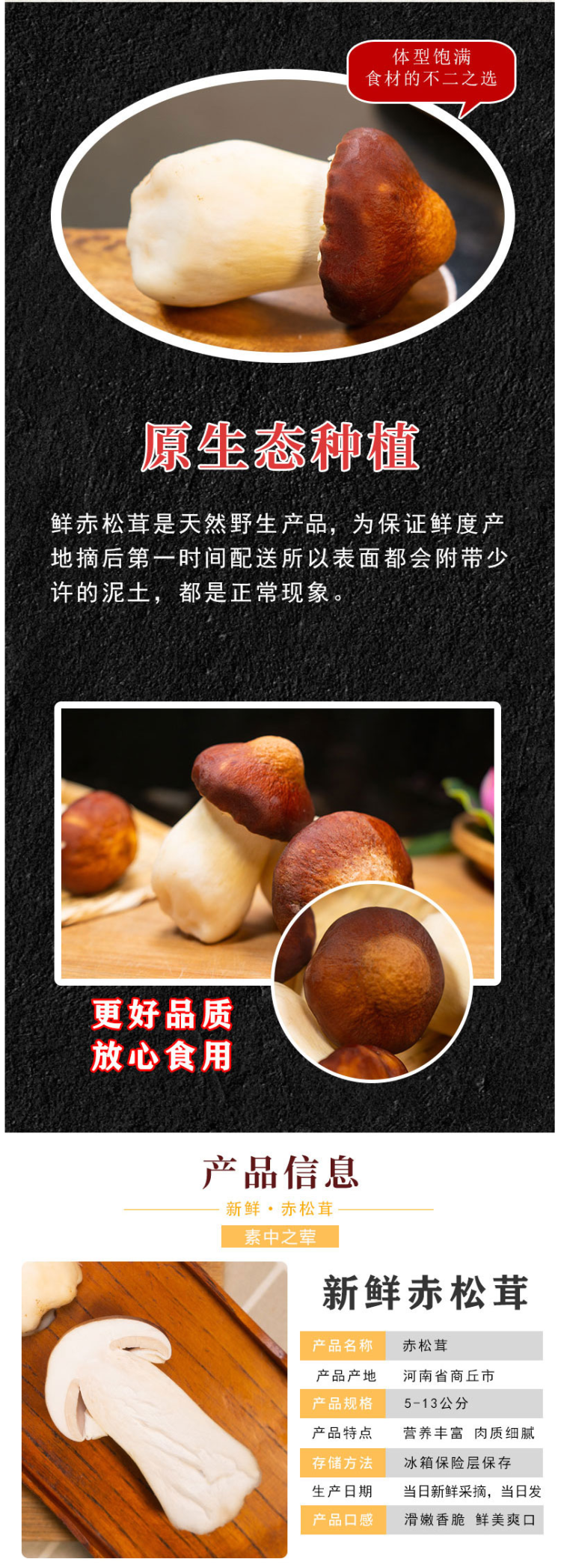 赤松茸的特点是朵大,色泽艳丽,肉质细嫩,盖滑柄脆,清香可口,具有色美、味鲜、嫩滑、爽脆、口感好。