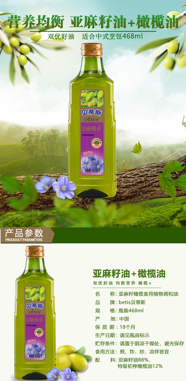 这款贝蒂斯亚麻籽橄榄油,是一款食用植物调和油,88%亚麻籽油+12%西班牙特级初榨橄榄油。