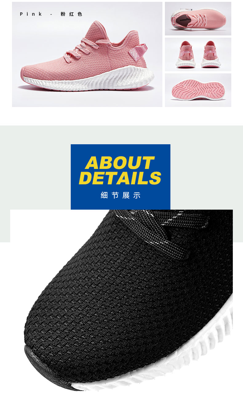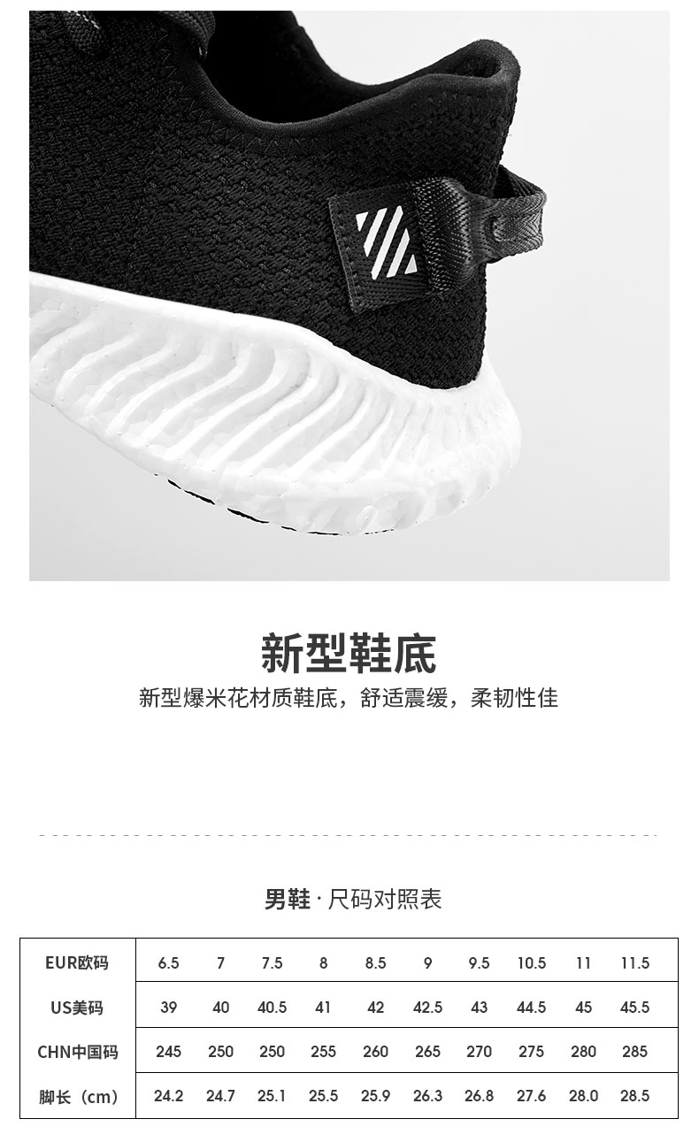 弹性飞织呼吸网2.0鞋面,透气不捂脚。脚感舒适轻便柔软,轮胎时尚花纹防滑耐磨,鞋底线条优美,潮流大屁股后跟,幅度立体感强。