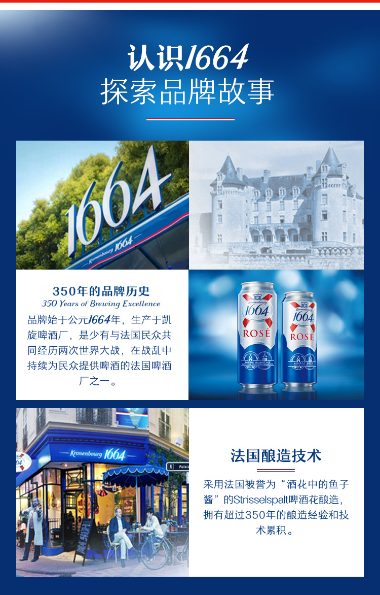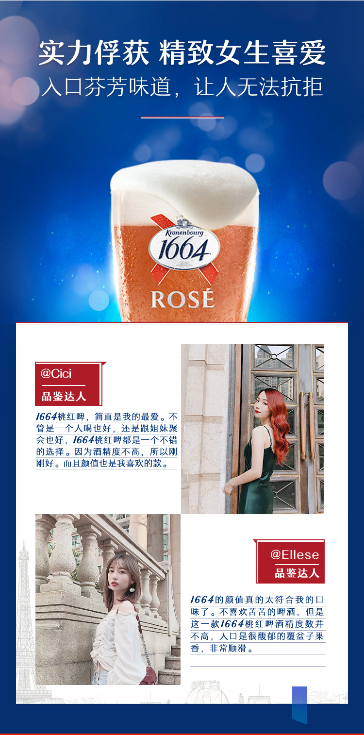 1664白啤酒是法国销量第一英国销量第二的啤酒,因其有着淡淡的水果香味,很多女孩子也都非常喜欢这款啤酒,超市6瓶是需要174元,在酒吧更不用说414元的价格有多高,