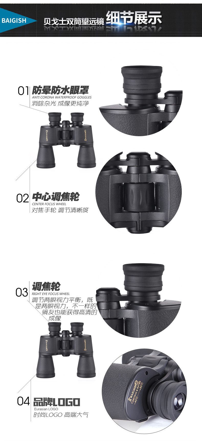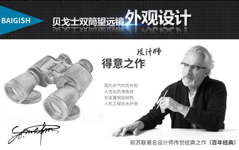 BAIGISH(贝戈士)为俄罗斯老牌望远镜生产厂家,早在二战时期,就生产望远镜供应军队,经过一个世纪的磨砺,以超常耐用和超高性价比闻名世界。品牌专注于望远镜的研发、生产。产品涵盖各类型双筒望远镜、观鸟镜、手机望远镜等。销售网络遍及中国、中东、欧美等全球100多个国家和地区,深受广大户外运动、特殊工种以及家庭消费者的青睐。