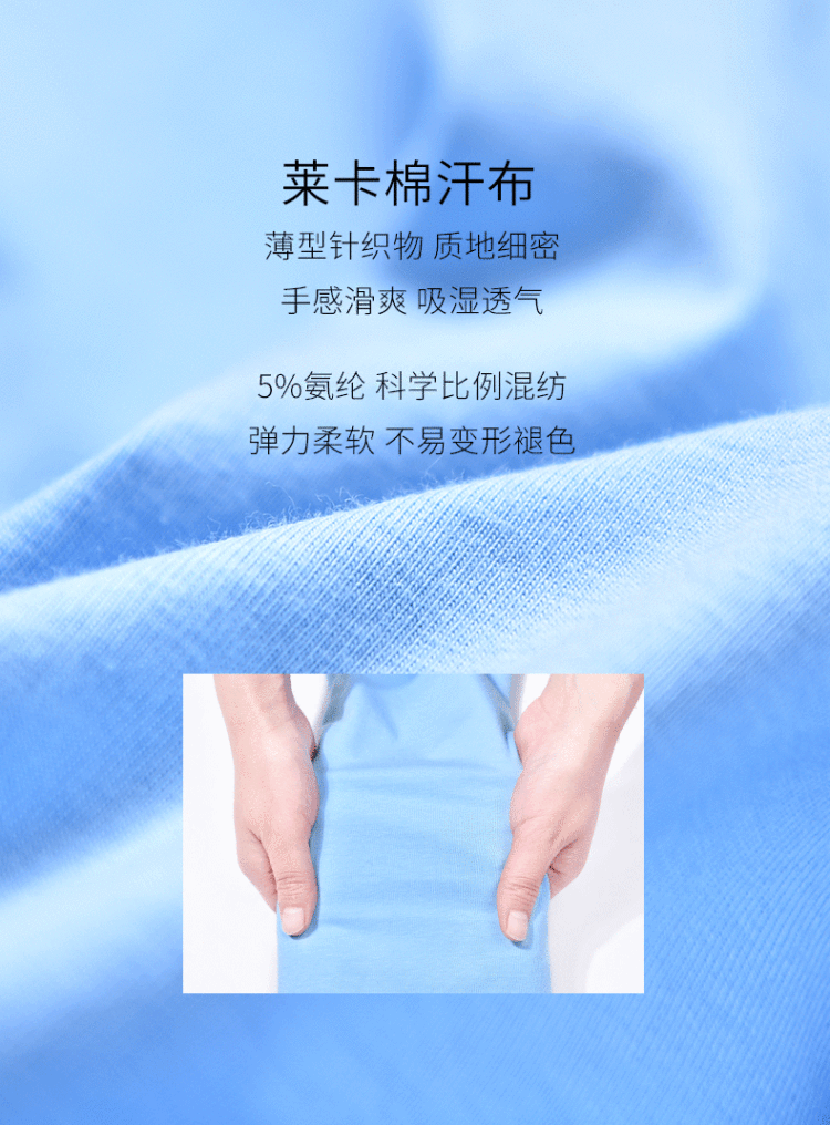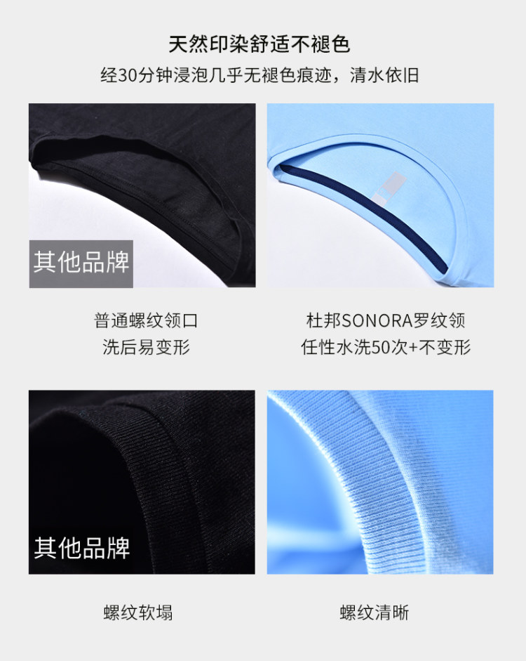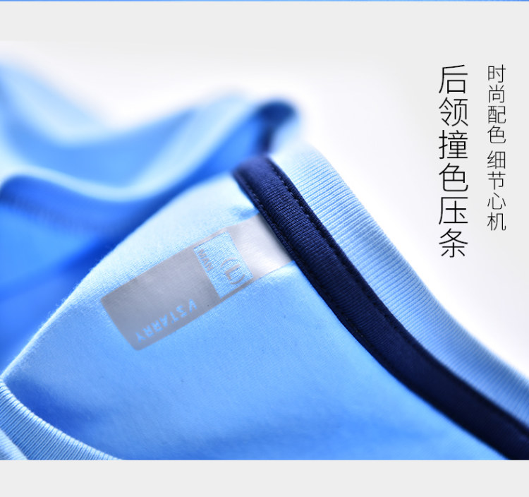 衣领带有罗纹设计,在保证领子回弹性的同时,久穿不变形。领后卫无感领标,不摩擦皮肤。衣袖袖口采用双压线工艺,针脚均匀细腻,内里缝线紧密,没有多余线头,细节到位。经典纯色设计,夏日百搭穿着。
