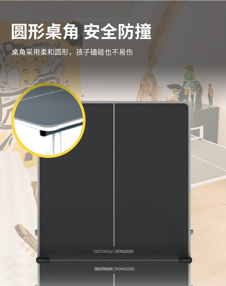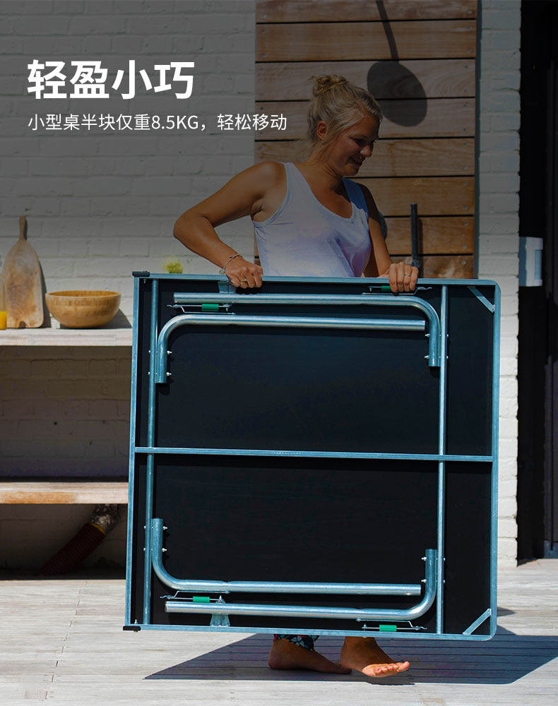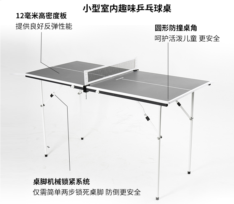 =389.9元 到手价,第1款此价,家用迷你的折叠乒乓球桌,规格为1370*650*760mm,两块拼接设计,每半块仅重8.5kg,可以轻松移动,桌面可折叠设计,折叠后仅3cm,收纳移动便捷,桌角机械式锁紧系统,安装简单方便,安全稳定,耐用不垮塌,桌角采用柔和的圆形,安全防撞,磕碰也不容易受伤。