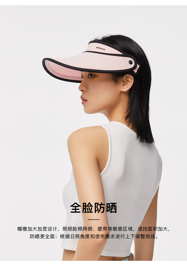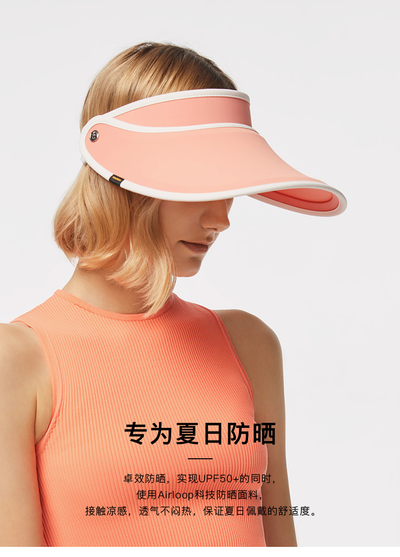 这款蕉下的防晒帽,采用airloop科技功能面料,十字针织技术,可以快速散热透气,经过BUTEC特殊工艺处理,带来持久有效的紫外线防护,接触凉感,告别夏日佩戴帽子时的闷热不舒适。整体重量非常轻盈,无压迫感,加宽的帽檐,可全脸遮阳防晒,UPF50+,有效隔阻95%以上的紫外线,防晒性能优越