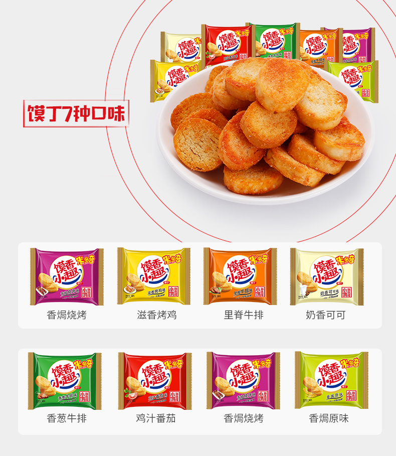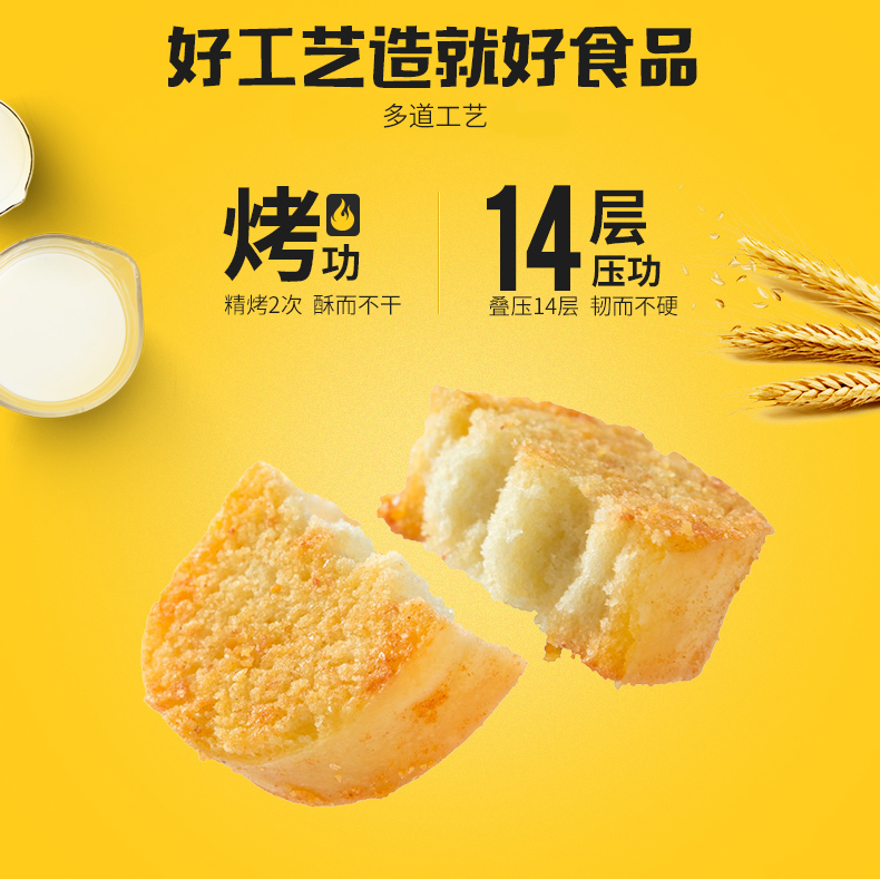 精选小麦,精烤2次香酥不干,叠压14层,韧而不硬、慢蒸60分钟香而不粘。香、脆、酥,口感超级好,老少皆宜,追剧必备。包含:香煸烧烤、滋香烤鸡、里脊牛排、奶香可可、香葱牛排、鸡汁番茄、香煸烧烤、香煸原味。随机4口味。领券链接点此