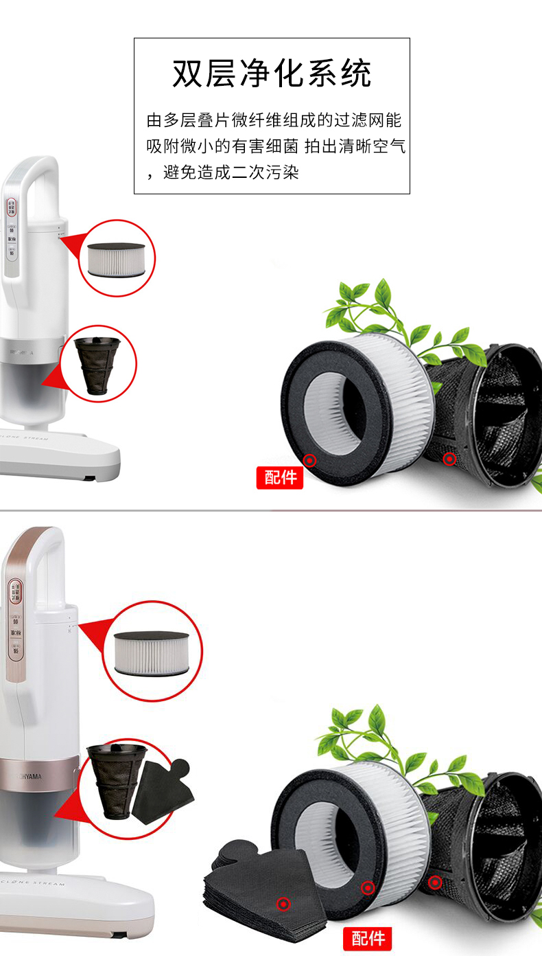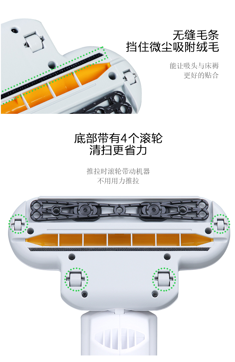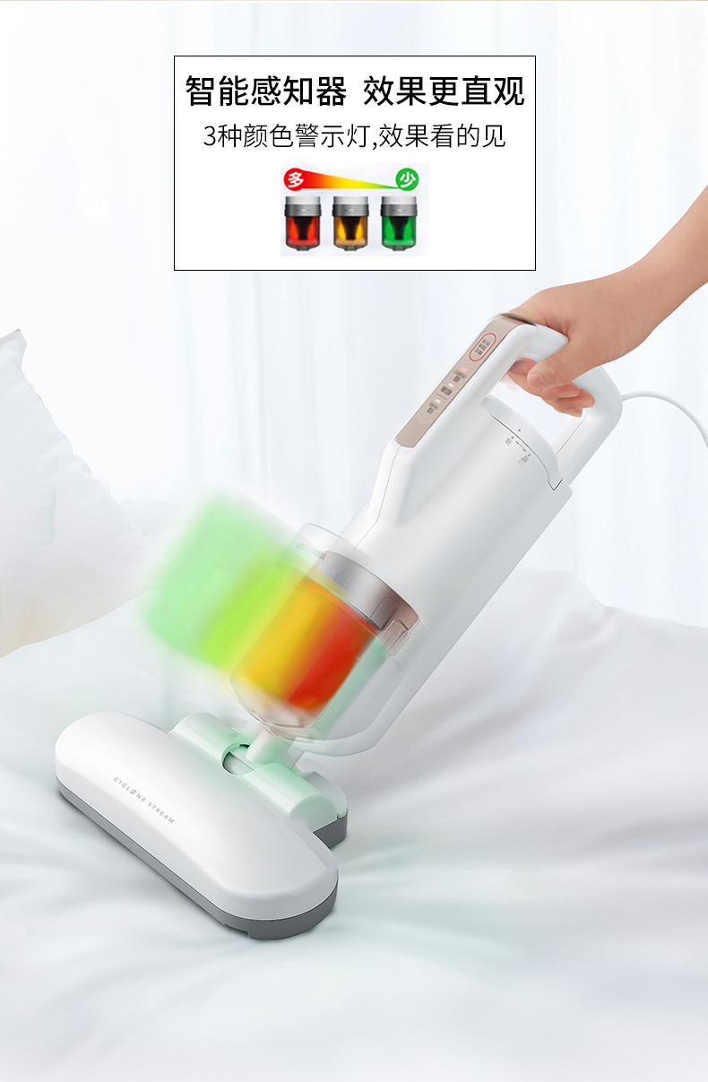强力吸尘:把被褥中的灰尘和螨虫吸出来,进入到集成滤网和尘盒中,可直接拆洗,减少后期耗材成本;