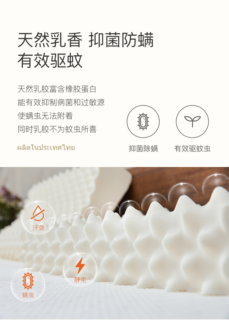 这款是在泰国本土制造,通过了欧盟ECO审核,并且是美国睡眠协会ispa成员。有效缓解颈椎痛,失眠症状,且采用美国杜邦面料,拥有去菌除螨的效果,使用健康放心。