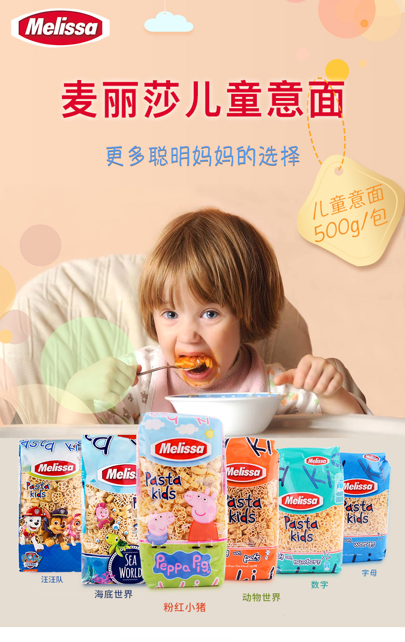 这款麦丽莎意大利面是专为儿童设计,把面条做成卡通造型,希腊原装进口,以杜兰小麦为原料,这个品种属于硬质小麦,具有高密度、高蛋白质、高筋度等特点,做成的意大利面呈金黄色,耐煮、面质软弹,口感劲道爽滑。