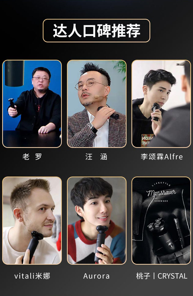 达人口碑推荐 定制大扭力马达2900rpm/min高转数,自主研发减震降噪刀头结构,智能动力恒定系统,持久输出稳定动力,低电量切剃不夹须。