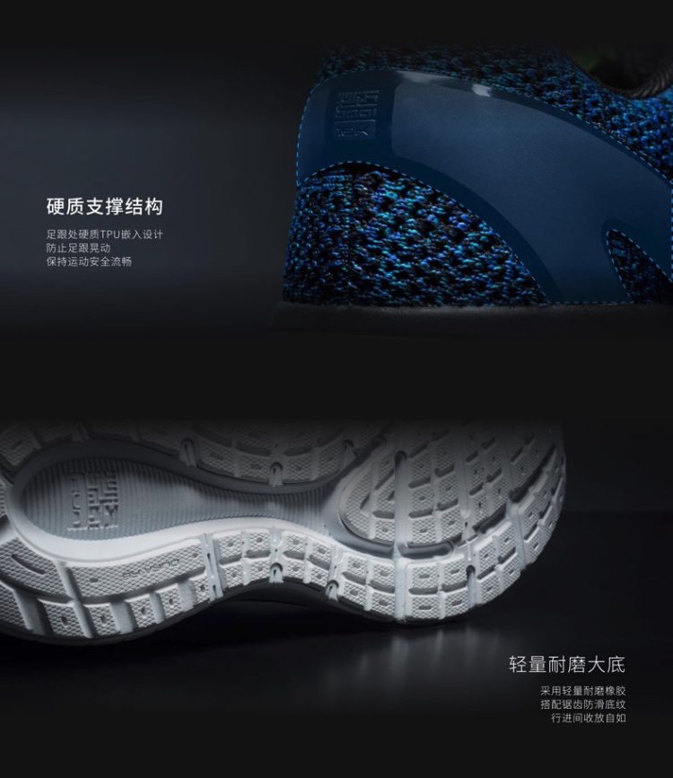 使用弹力针织袜套鞋面,鞋底为EVA+耐磨橡胶大底,42码仅重230克,非常轻便,鞋楦符合国人脚型。经专业跑者长期实测,适合每天不超10公里跑步距离。