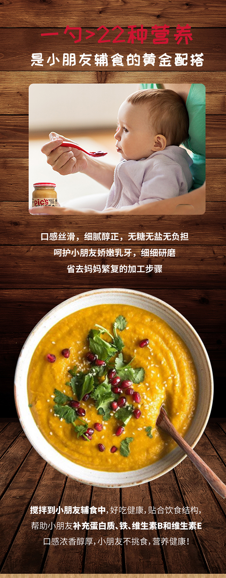 无盐低糖的花生酱宝宝也能放心的吃,完全可以作为婴儿辅食的一种选择。