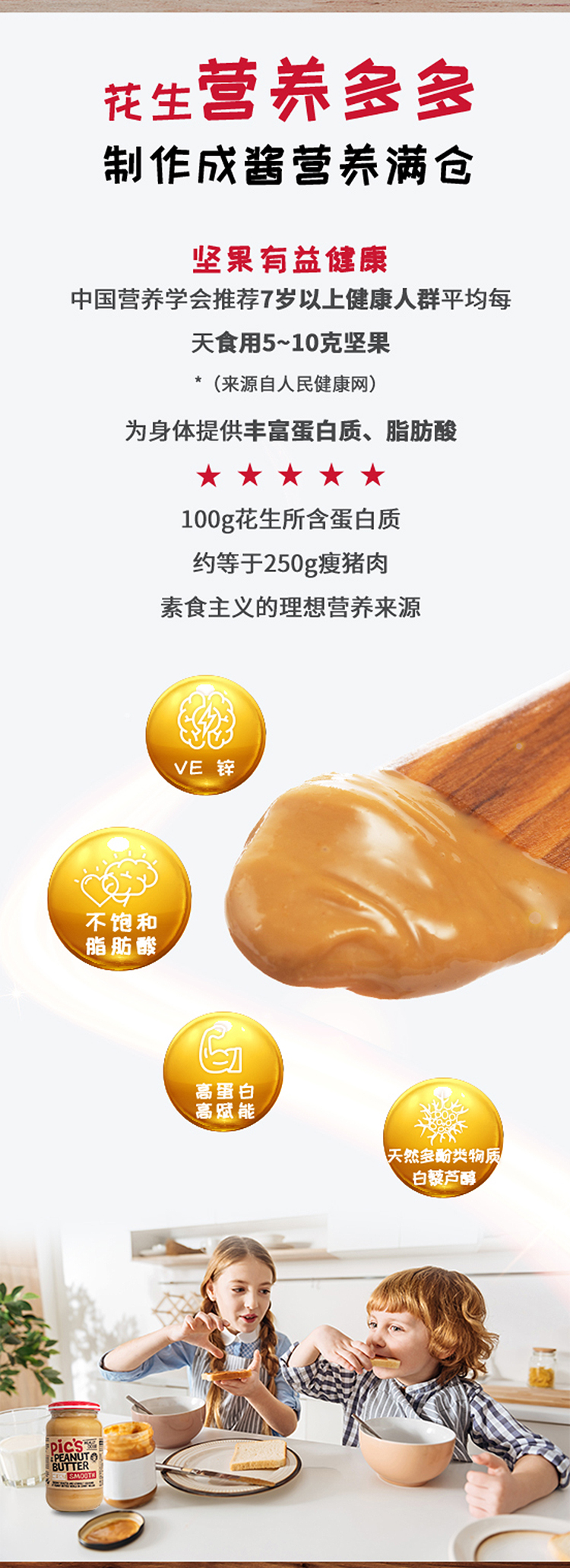其实在国外,早餐有烤面包配花生酱的习惯,PICS不油不腻,吃着健康,这也是PICS畅销全球的重要原因之一。