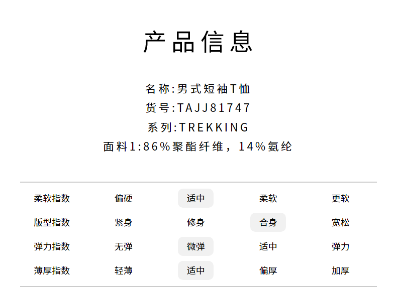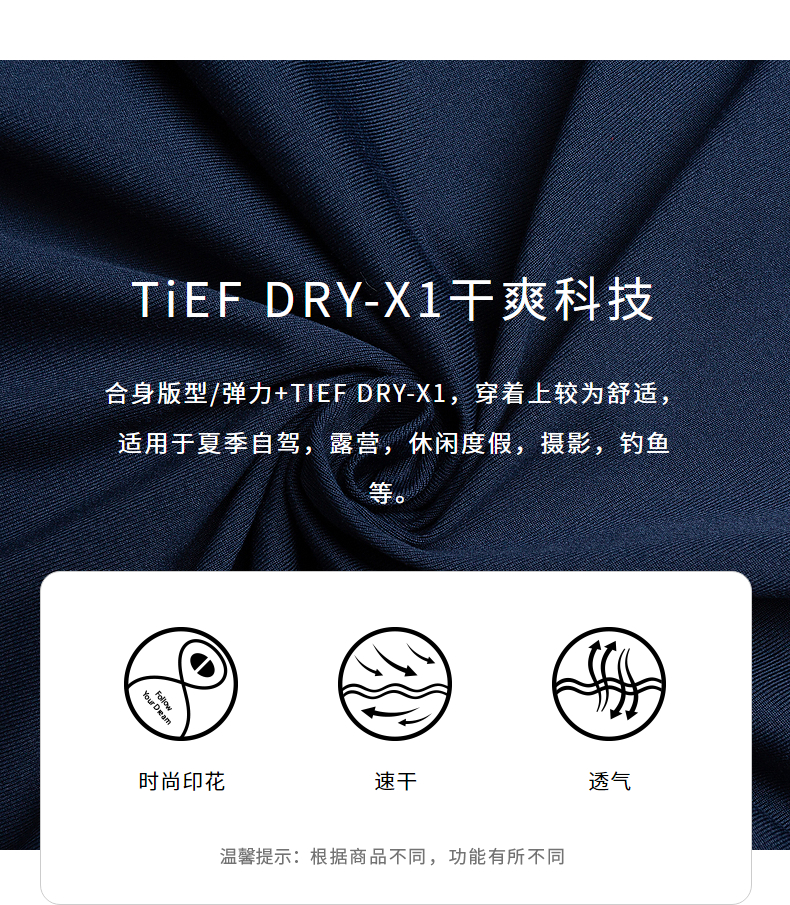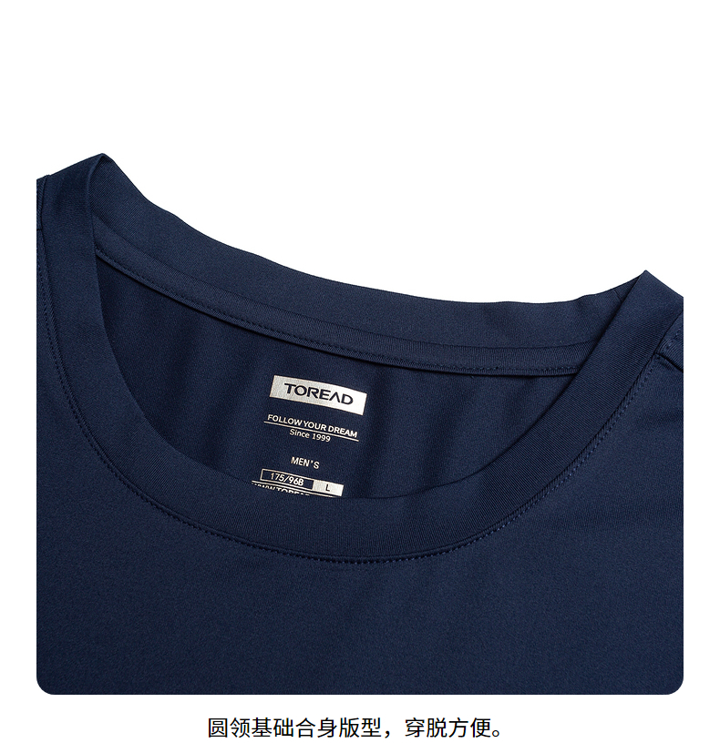 这款探路者男速干弹力印花T恤是2021年新款,使用86%聚酯纤维+14%氨纶弹力混纺,搭配TiEFDRY-X1干爽科技,吸湿排汗,速干透气,能将汗水直接泵吸到衣服表层使其快速排出,贴肤面干爽舒适,出汗不粘腻。