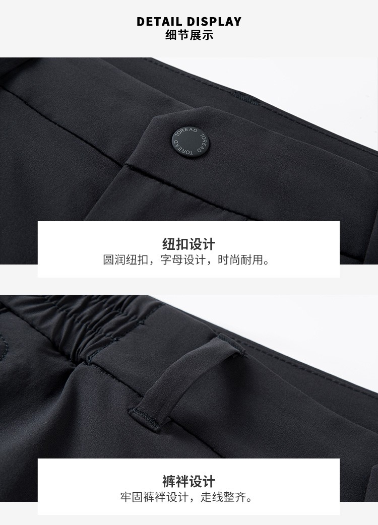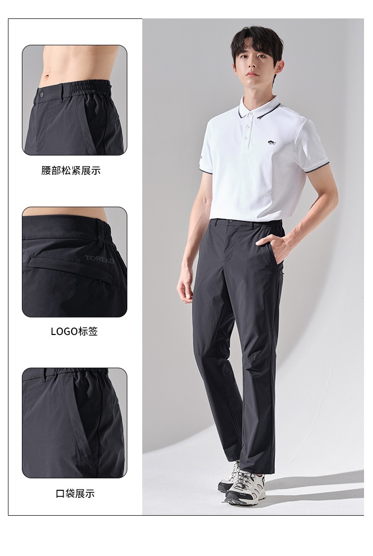 这款探路者男防泼水户外休闲裤,是2021年春夏新款,采用100%聚酯纤维面料,摸起来的手感柔软爽滑,抗撕裂耐磨损,表面还加持了防泼水处理,无惧小雨。
