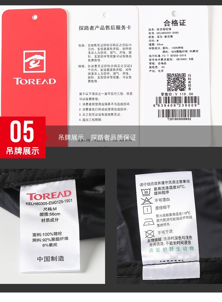 这款探路者鸭舌帽,主体使用100%锦纶的速干面料,耐磨损透气性好,同时拥有接近纯棉的轻柔手感和舒适度,还有两道独特的鸟眼结构细密网布,更增加透气性。
