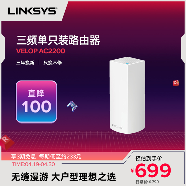 天猫linksys旗舰店目前售价799元,领满500减60元优惠券,到手价639元包邮。近期,入手好价,三频千兆,高速穿墙,智能Mesh组网,有需要的可关注。