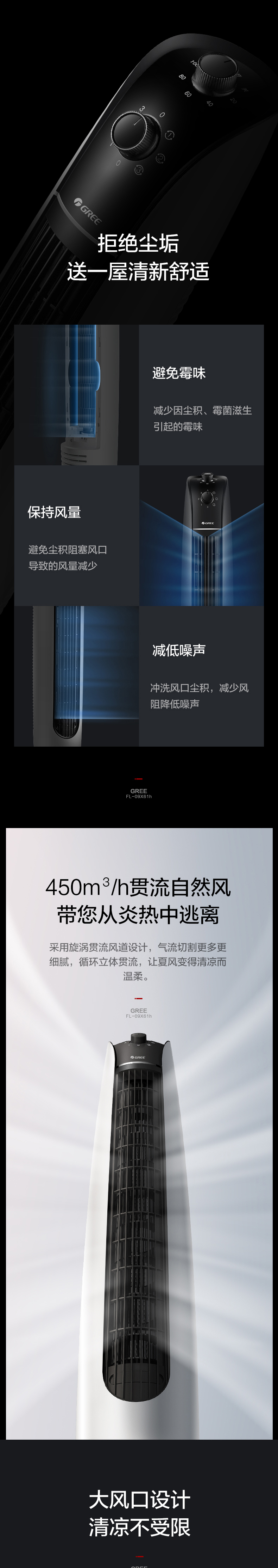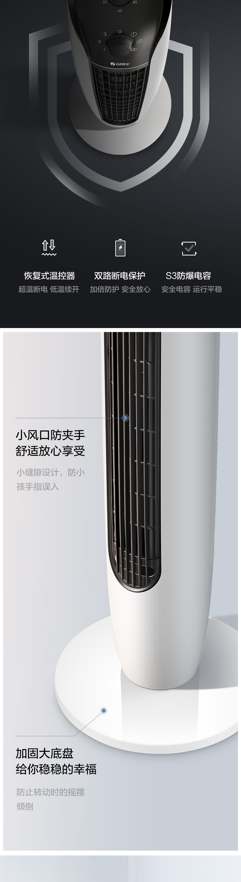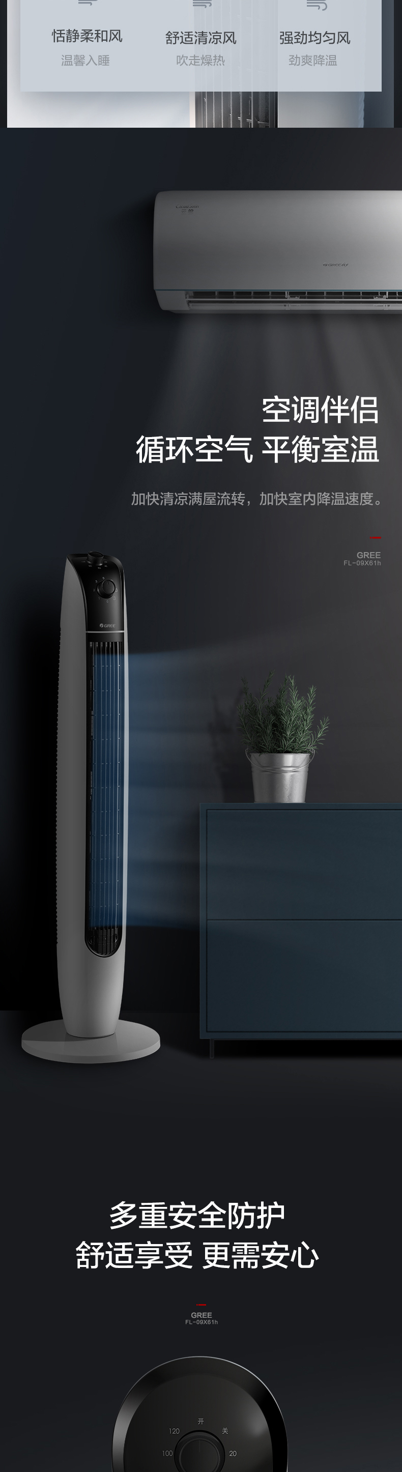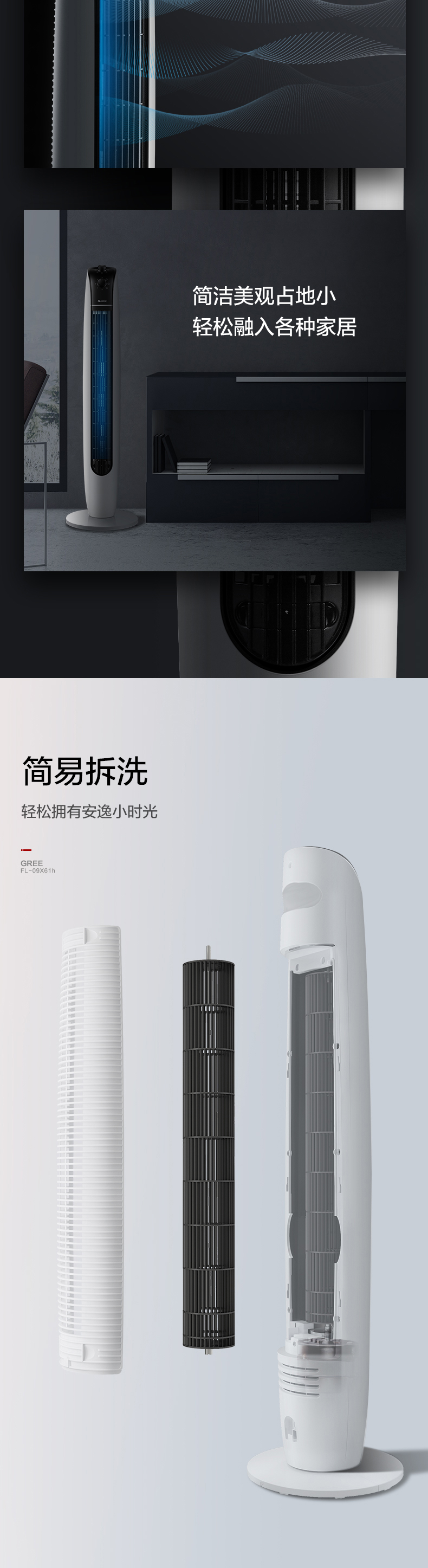 塔扇相比传统风扇颜值更高,立式更省空间,无扇叶更安全,根据气流学原理,涡轮旋贯流技术,无扇叶垂直出风,出风柔和细腻,风感轻柔,吹到脸上没有头晕感,适合老人、小孩和体弱的人。