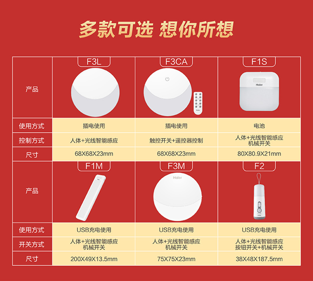 海尔 LED感应灯,柔和暖光,人体+光线智能感应,无需接线即插即用。适合卧室、楼梯、衣橱、洗手间多场景使用,方便省电非常实用。