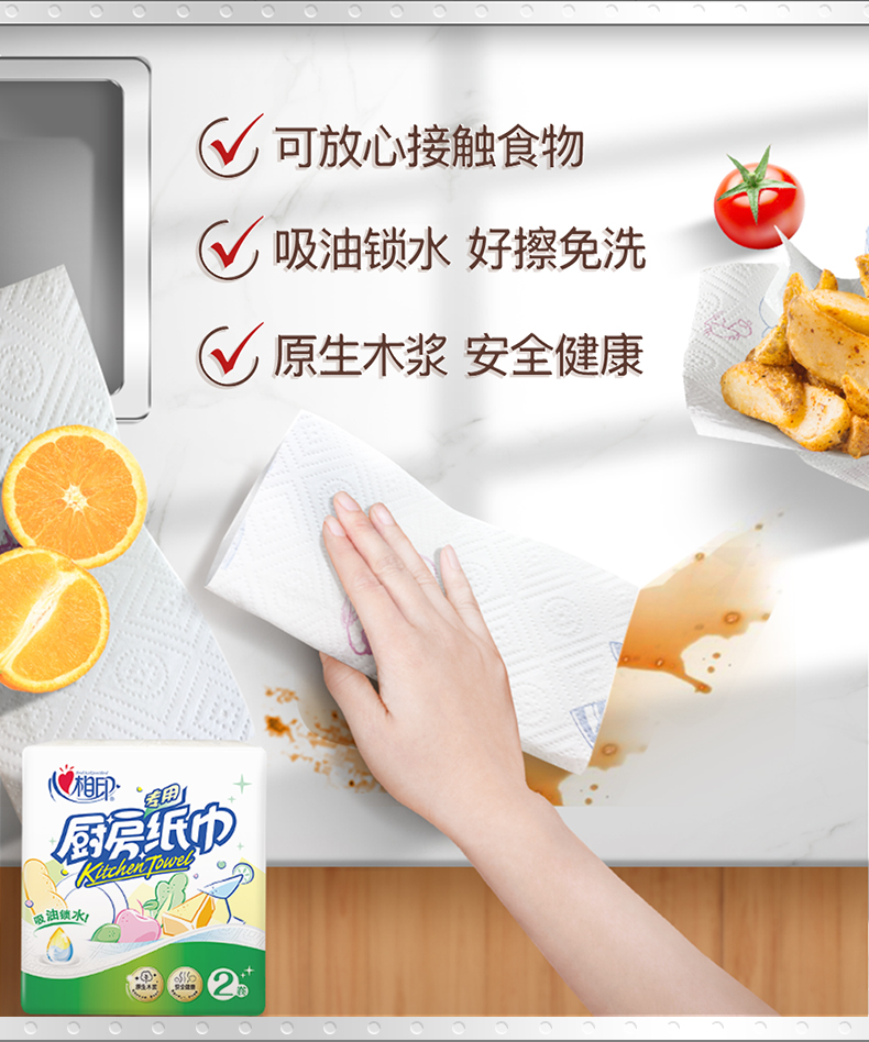 这款心相印 厨房纸巾,规格:75节,优选木浆原料,无有增白剂,自然健康。错纹设计,吸油吸水,效果加倍。经过450℃高温消毒,能够直接与食物接触,一张可解决多种厨房问题。