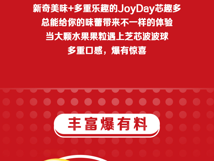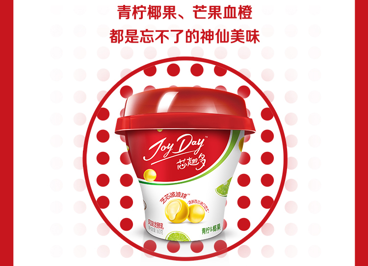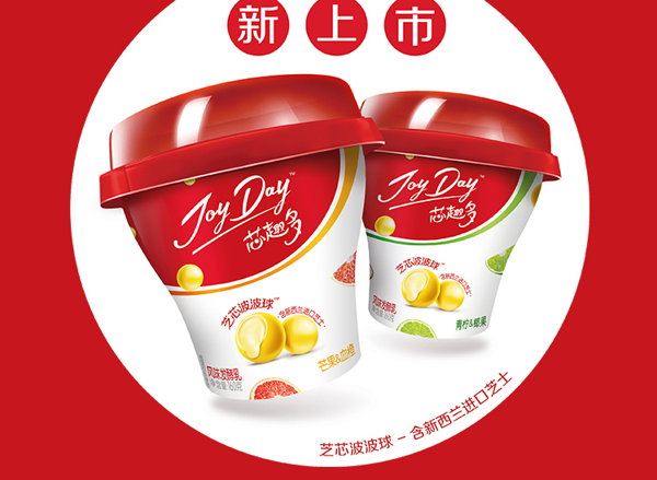 芝芯波波球酸奶,是JoyDay芯趣多品牌下的又一全新力作,创新地将新西兰进口芝士包裹在Q弹软糯的波波球内,融入醇厚丝滑的酸奶中,搭配清甜可口的青柠椰果/浓郁饱满的芒果血橙,多重美味碰撞,一口芝芯爆有料。