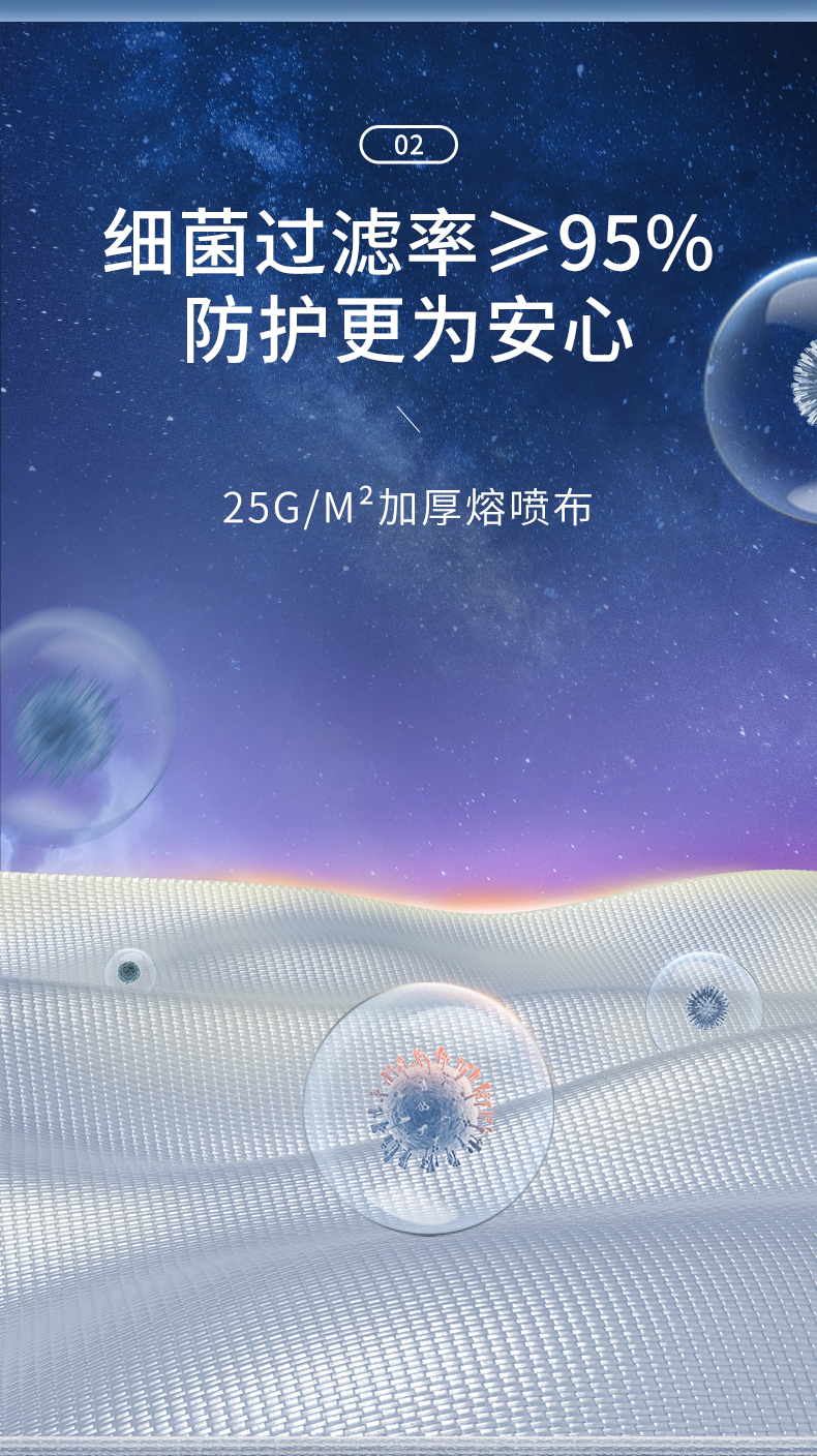 药监备案可查,符合YY0469-2011标准,过滤效率大于95。三层无纺布设计,加厚熔喷无纺布,空间大,隐形可塑鼻梁条,佩戴舒适,平常用在中低风险地区完全没有问题。