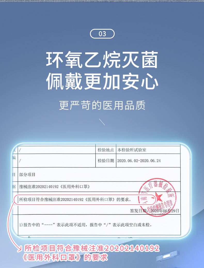 官方旗舰店直营,品质有保障。市面口罩品牌繁杂,挑选一定要注意医疗器械认证和生产企业资质。超亚口罩是河南省超亚医药器械有限公司生产,医疗器械注册证编号:豫械注准20202140192,符合YY 0469-2011《医用外科口罩》的要求。