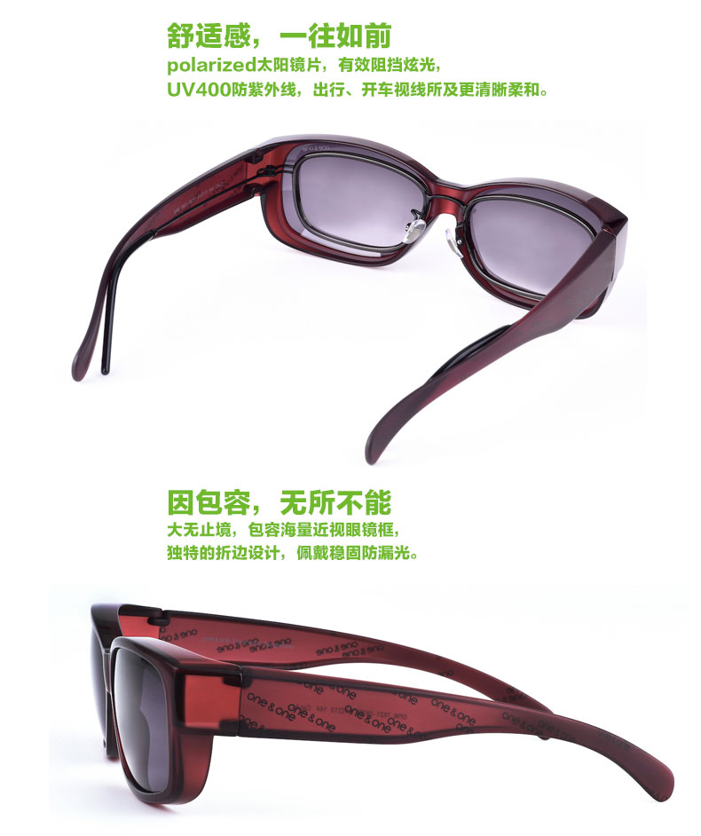 这款oneone 男女偏光太阳镜是套镜,近视眼镜佩戴者可以直接套在近视的光学镜架上,对于近视的朋友来说非常友好。如果是隐形眼镜佩戴者或正常视力都可以直接佩戴,适合各类人群。
