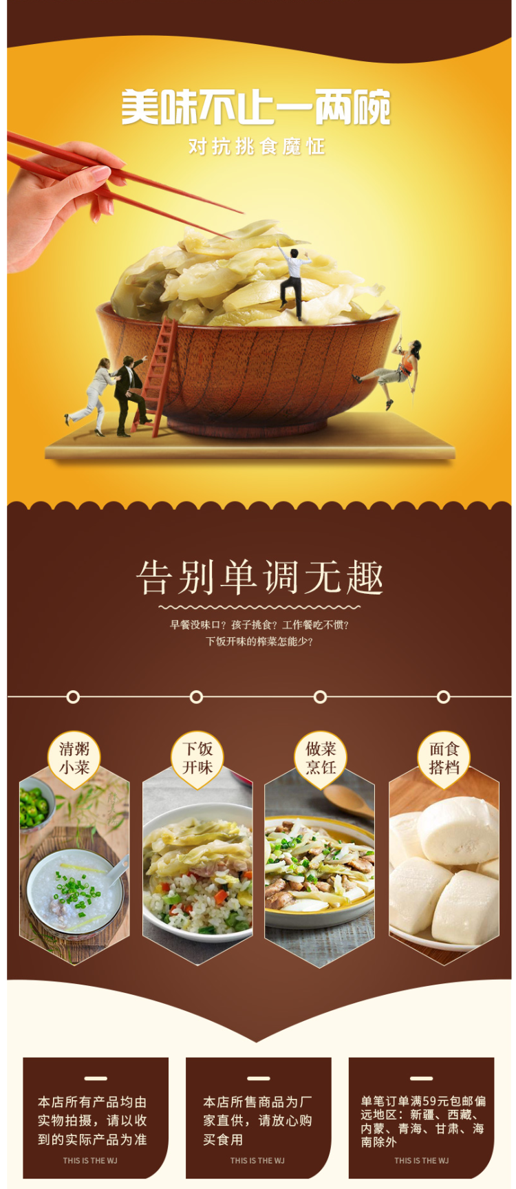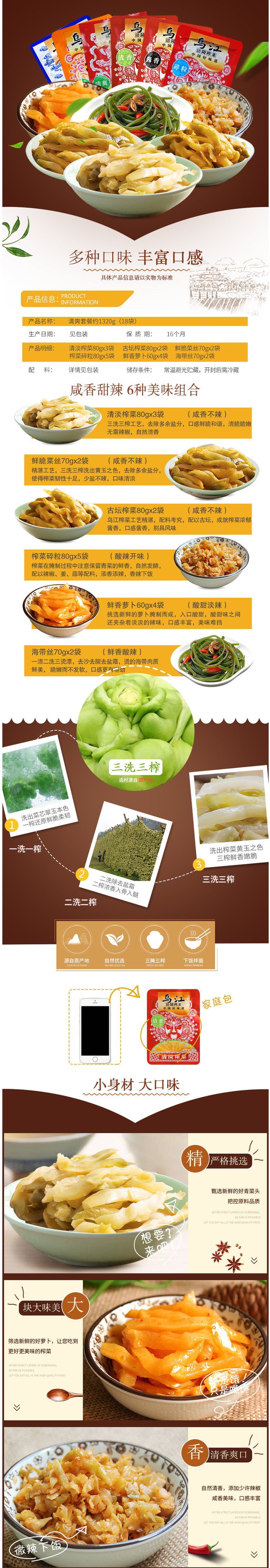 涪陵榨菜已有一百多年的历史,位居世界三大名腌莱之首,历来被列为素菜佳品其工艺独特,鲜香脆嫩,回味悠长。乌江榨菜是重庆市涪陵榨菜集团旗下众多榨菜品牌之一,运用三洗三榨工艺,去除榨菜多余盐份,口感更加香脆和谐。