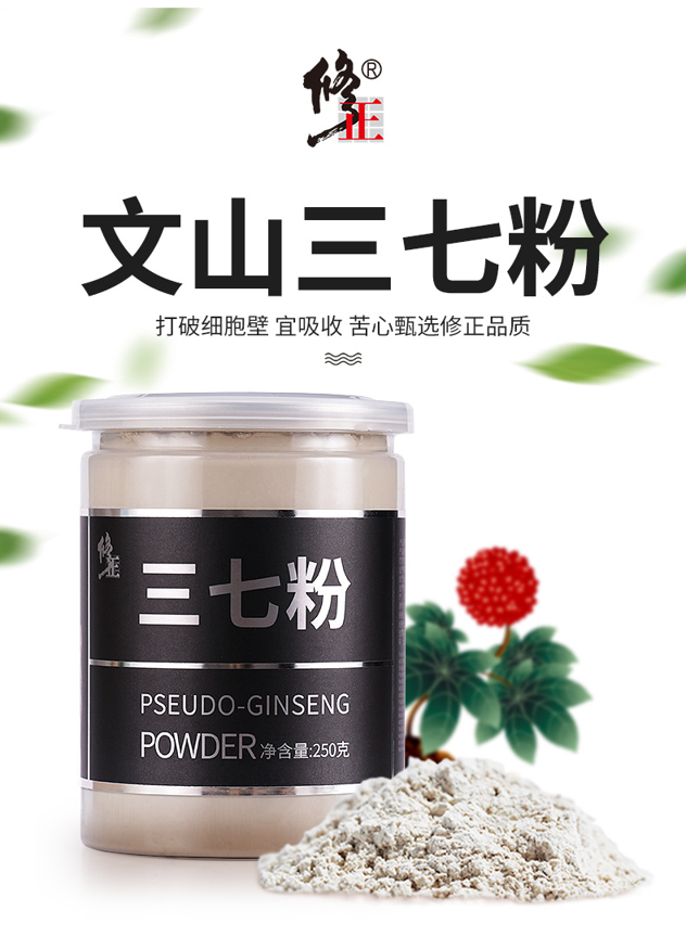 天猫百年修正旗舰店358元,可领290元优惠券,实付68元到手。修正药业出品,250g半斤装。精选云南省文山壮族苗族自治州原产地优质三七,皂苷含量高,破壁细度达到200-400目,粉质细腻,高活性高溶出率,有效成分高易吸收,口感醇香,略带微涩回味带甘。