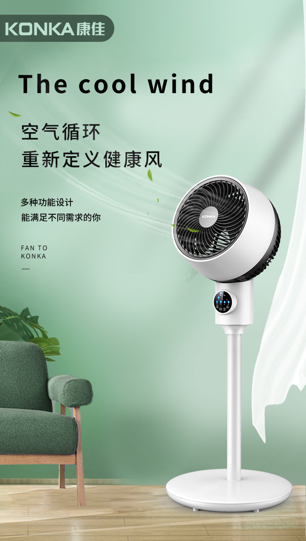 作用原理:普通风扇是单纯的利用叶片快速转动,使风扇面前的空气快速流动,使人体表面水分蒸发,吸收热量,从而让人体感到凉爽;空气循环扇主要作用是将室内空气形成对流循环,以合理的空气流向达到平衡温度的效果。