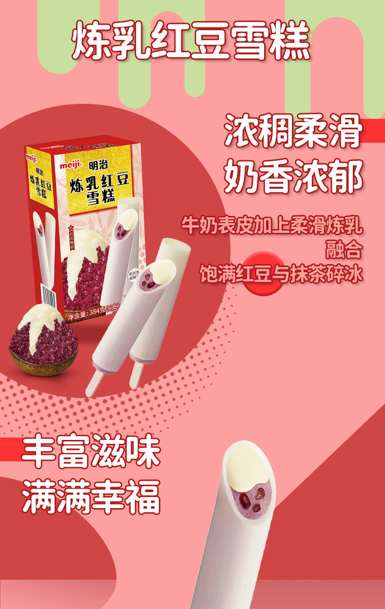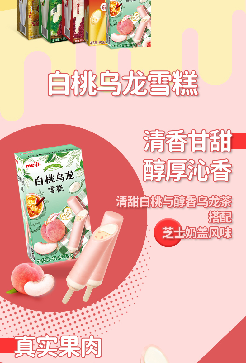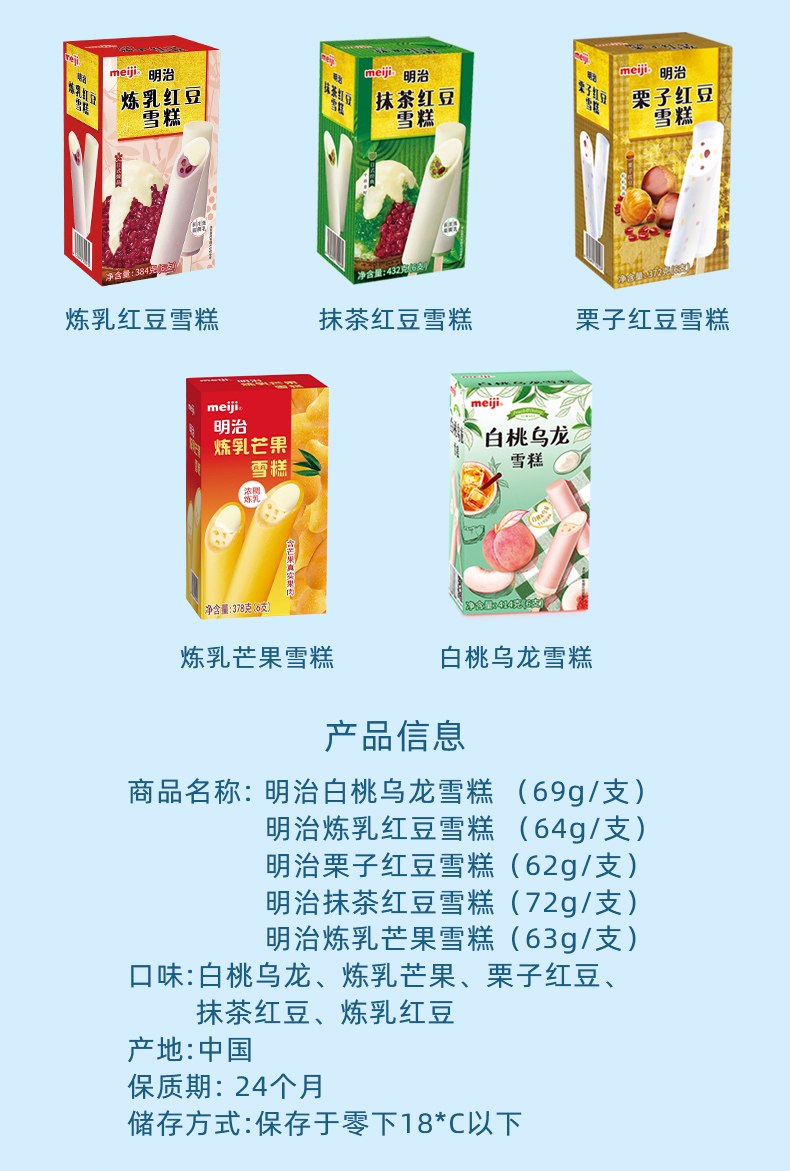 日本明治雪糕源自明治集团「官网」,已具有80多年历史,始终坚持选用新西兰天然牧场的纯正奶源,以新鲜果肉、高级坚果等作为原料,更最大程度地减少香精、色素及添加剂,务求每一件雪糕出品美味天然。1996年至1999年在日本已连续四年销量第一,风靡日本和东南亚地区。