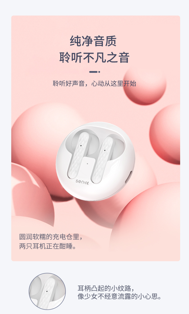 分体设计,支持蓝牙5.0链接,无盖便携盒设计,支持磁吸,避免无盖设计下易丢失,取出即连,单耳低至3g,支持3小时续航,充电仓支持9小时续航,共计12小时续航,支持触控操作。领券链接点此