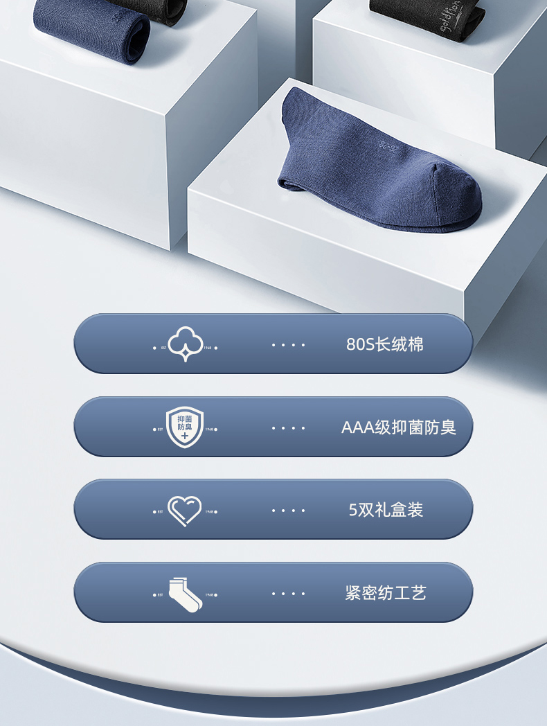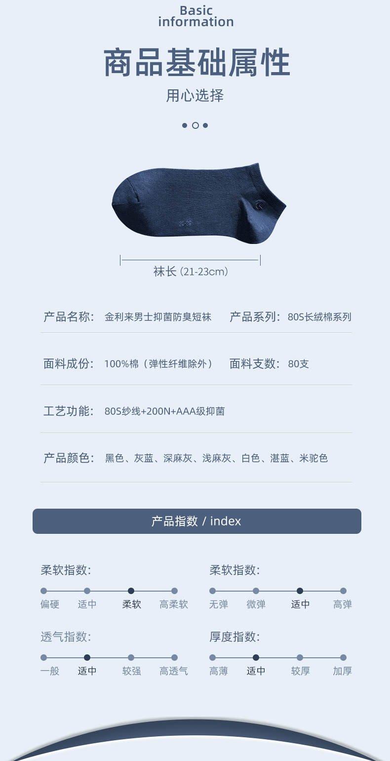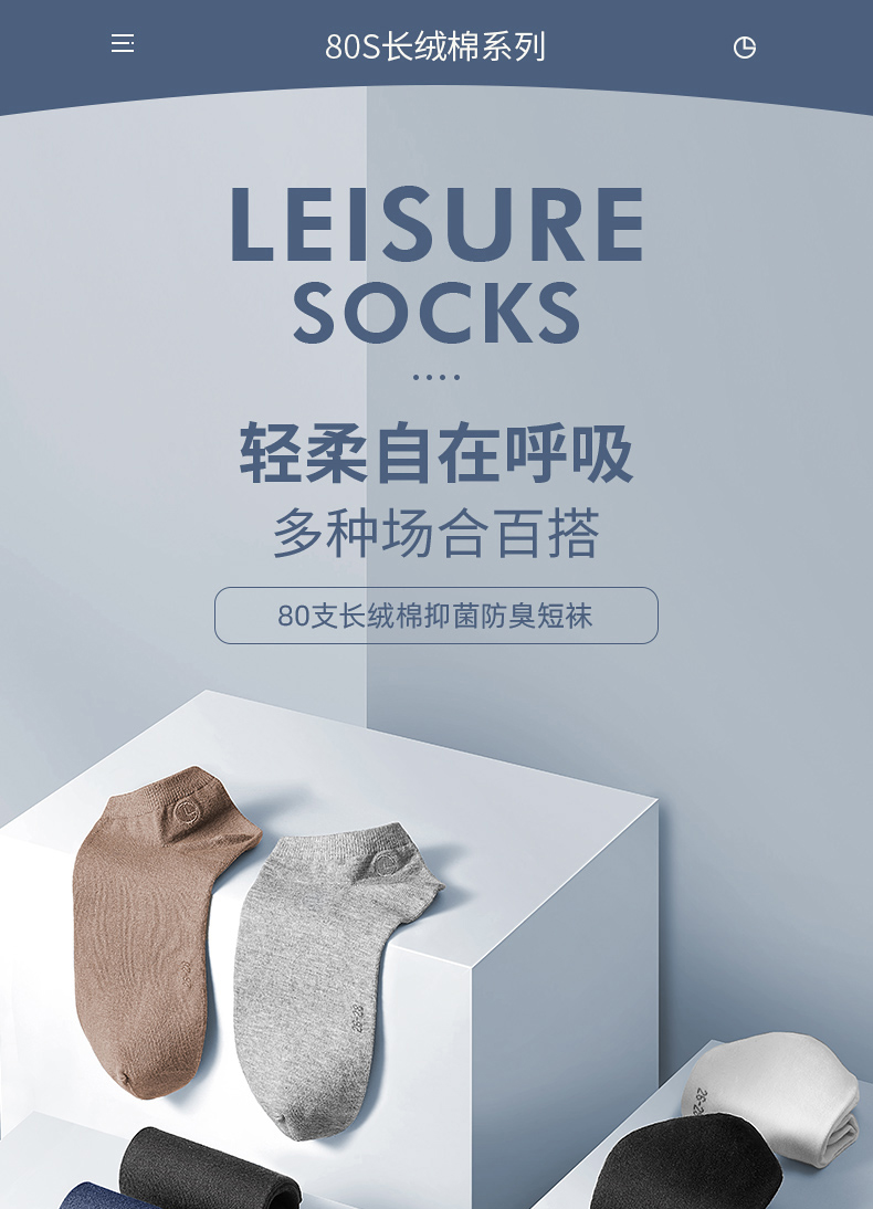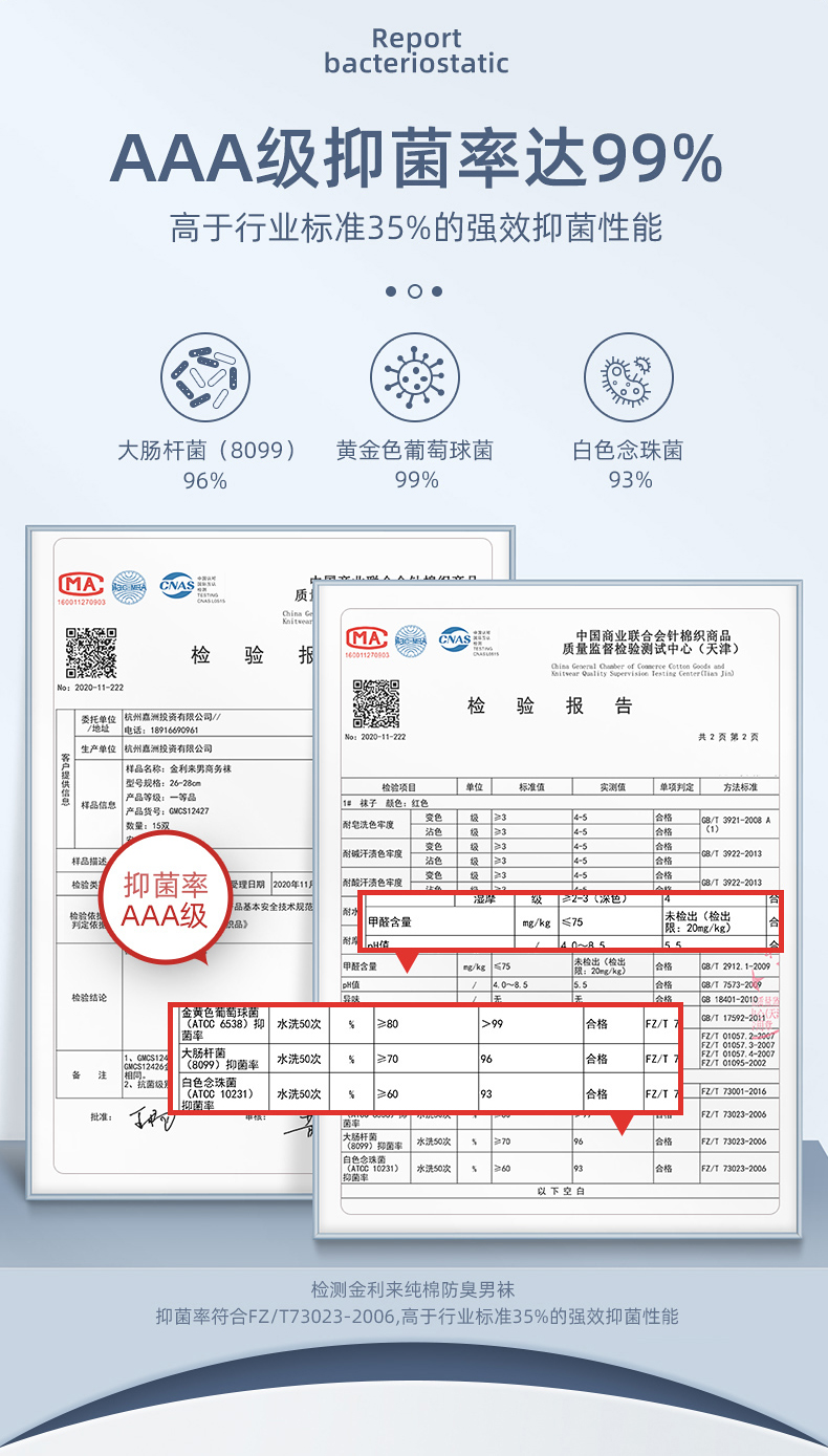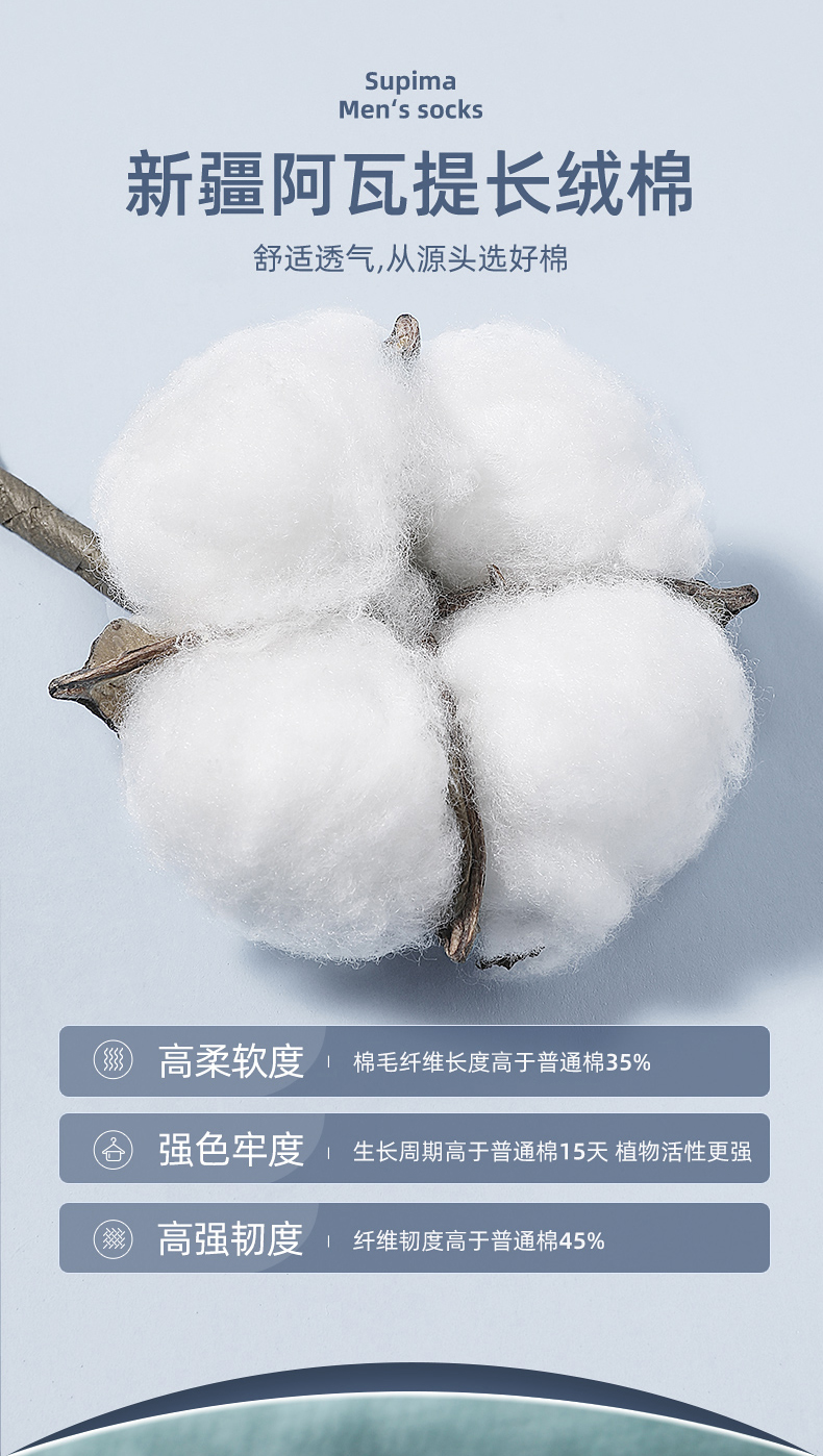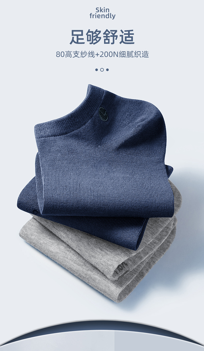 纺出来的棉线有光泽、耐磨不起球、轻盈且透气性好。采用80支+200针织就(做袜子能有40支的就很不错了),支数越高、针数越多,面料就越耐磨有质感。采用AAA级银离子抑菌科技,实测抑菌率高于99%。