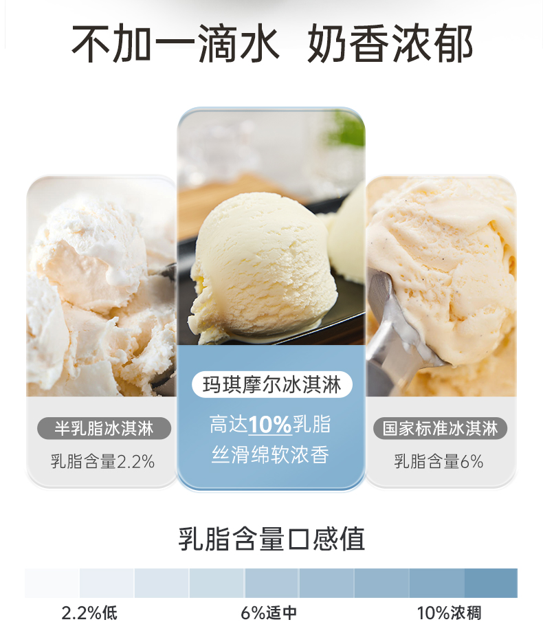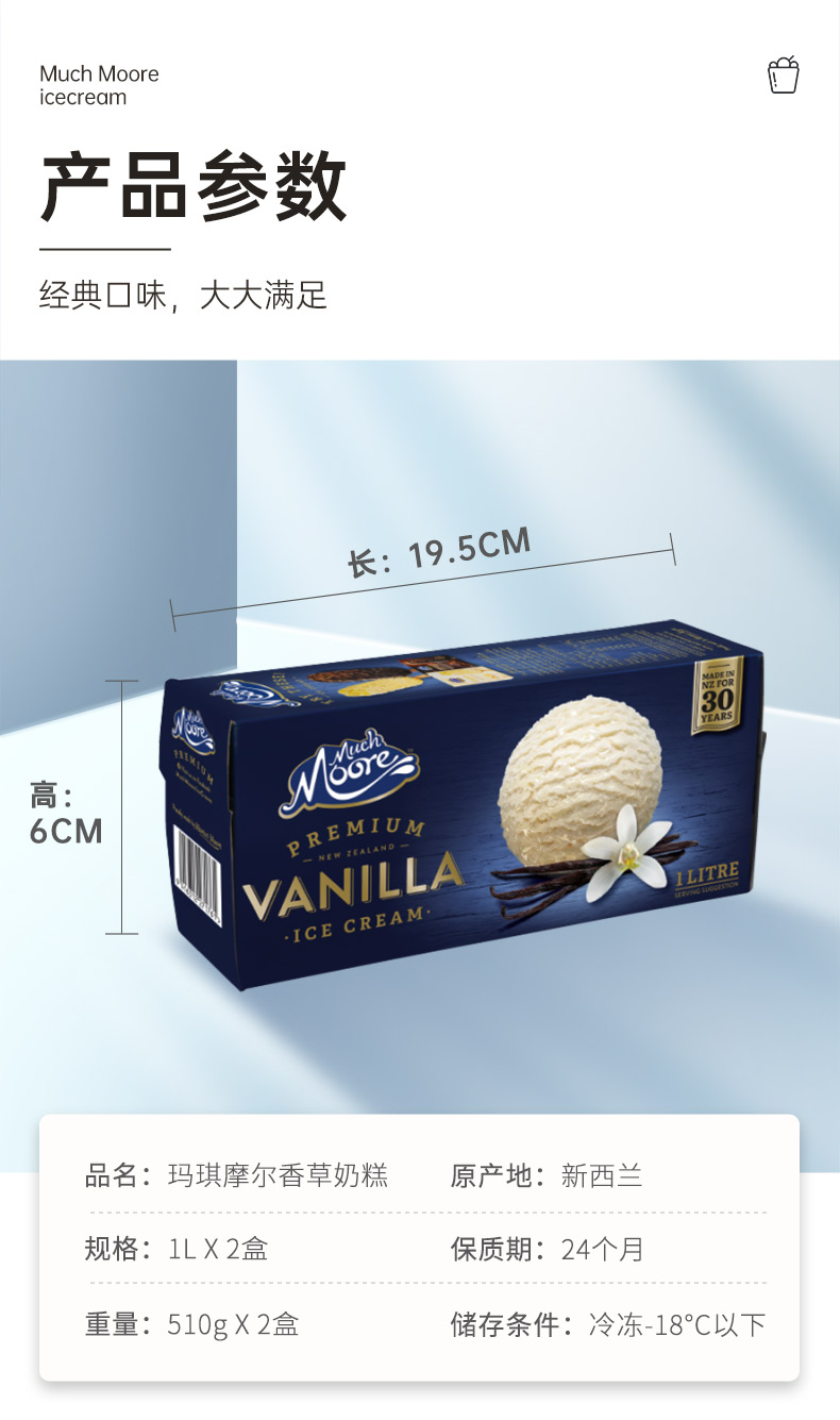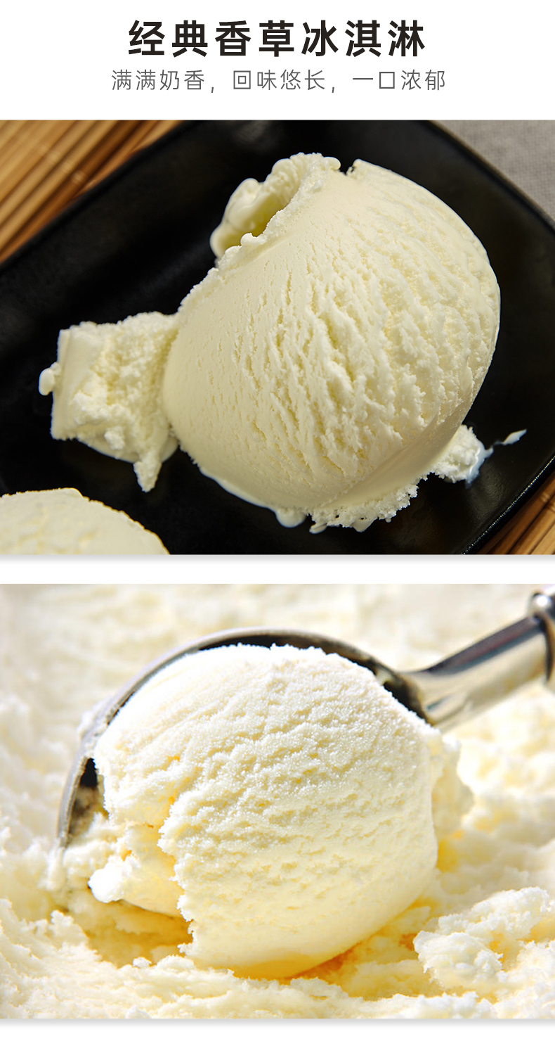 新西兰鲜奶源,10%乳脂和高含量的蛋白质,不添加防腐剂和人工色素。易吸收好消化,天然好营养,宝宝孕妇也能吃。规格:每盒2斤大分量,相当于20杯100ml杯装冰激淋、或25个80ml单球冰激淋。