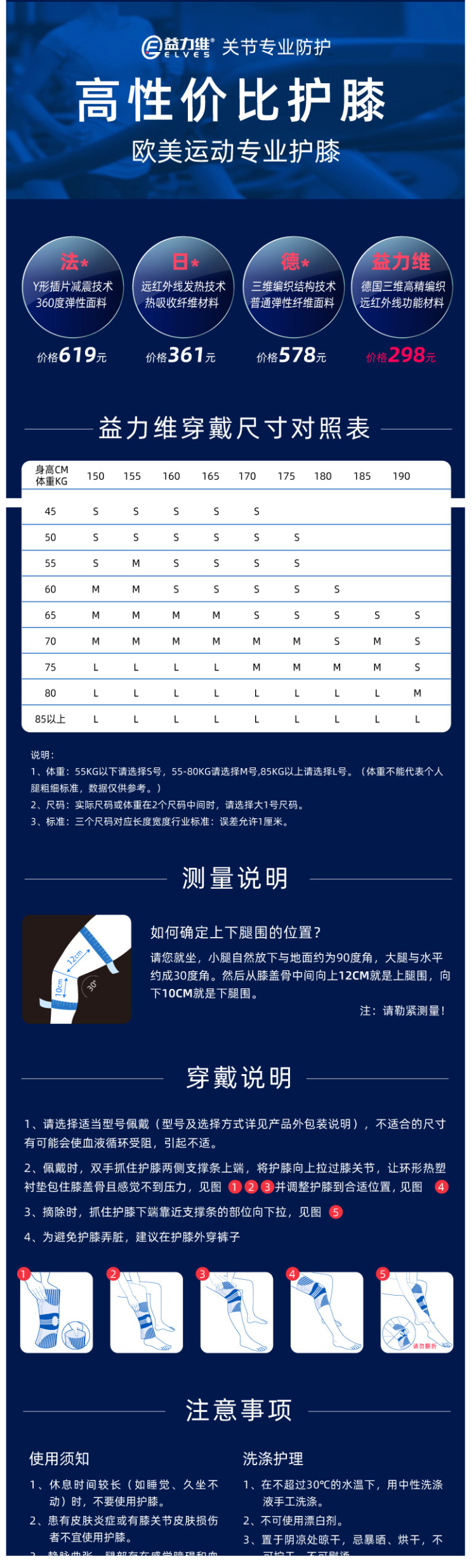 天猫益力维旗舰店299元,可领250元优惠券,实付49元到手,高端定制级护膝,3码可选,适合专业运动防护、膝关节损伤护理、老寒腿日常养护等。