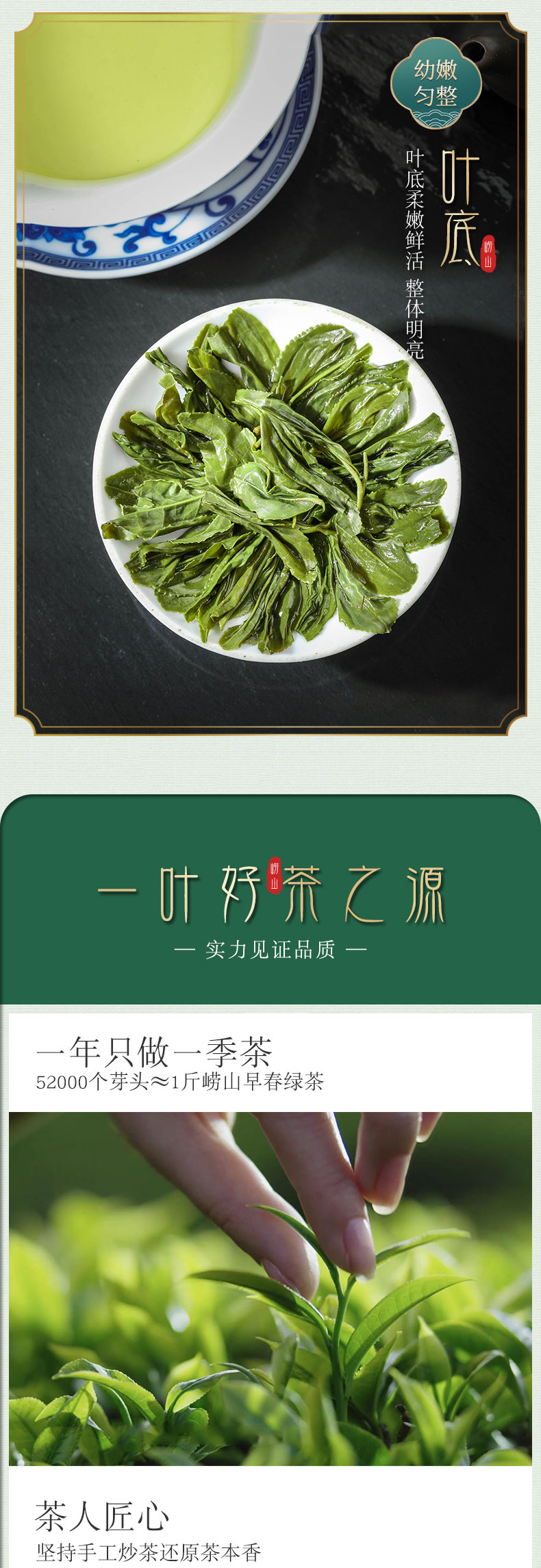 天猫崂山茶茶叶旗舰店139元,可领70元优惠券,实付69元到手,崂山茶会长单位,源自5A景区核心生态茶园,以大豆为肥、山泉水浇灌、无农药无化肥、一年只产一季,1斤早春绿茶需52000+个芽头。