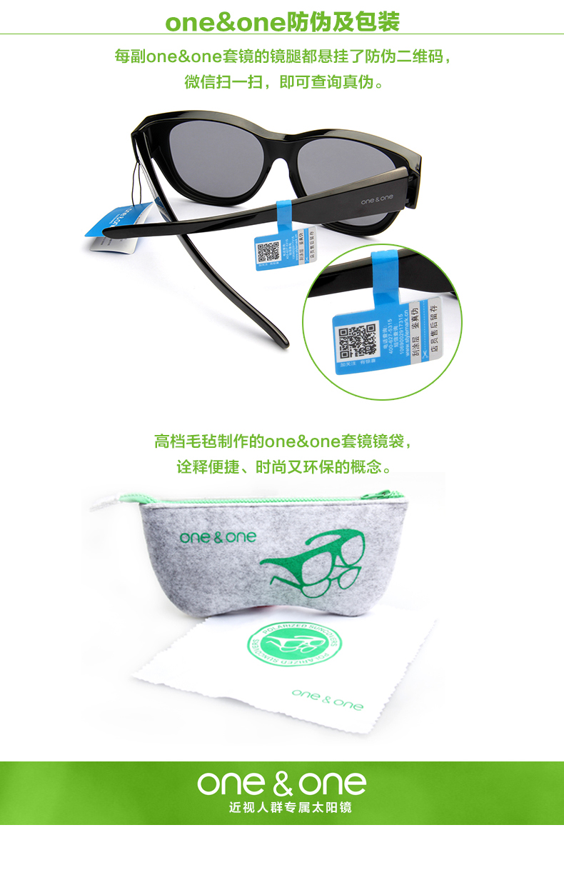 one&one的偏光套镜让近视人群可以轻松享受阳光视觉,解决近视人群的视觉烦恼。在线下占据近视太阳镜绝大部分的市场,是近视人群不可或缺的功能产品。