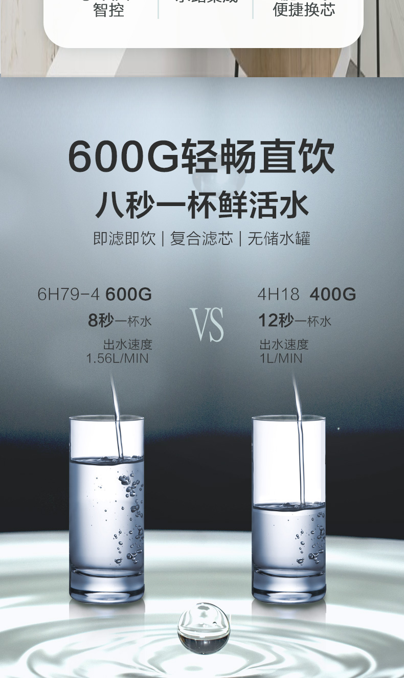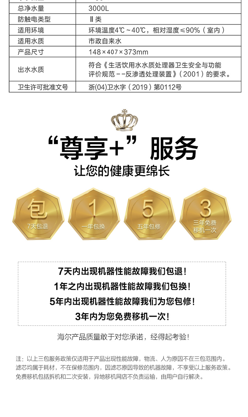 海尔这款型号为HRO6H79-2的RO反渗透净水机,采用600加仑进口RO膜片,每分钟额定出水1.5升,滤芯“粗壮”滤料足,双芯净化成本更低,一体集成的管路设计,省心不易坏,无漏水风险。进口RO反渗透膜片寿命可达3年,非常划算了。