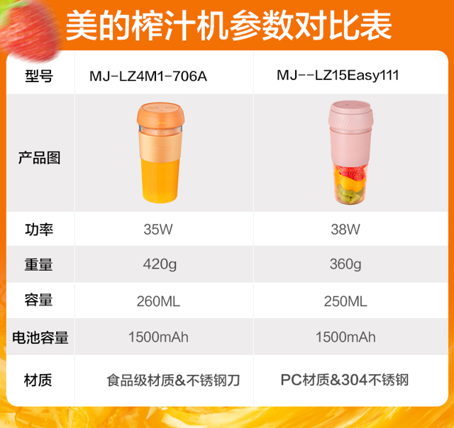 第一款此价,2021款新品上市,食品级安全材质+硅胶防滑设计,美观又时尚,将强劲的电机和刀头隐藏在杯盖里,非常的轻巧便携,彻底告别传统榨汁杯底座的又笨又重,单手可握,开盖即饮,非常方便。居家、办公室、旅行携带都适合,杯身容量250ml,操作简单,轻触防误开开关,双击开启,单击关停;内置1500毫安锂电池,超强续航,满电约可榨10杯。