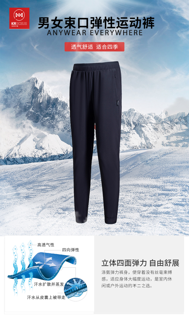 这款地球科学家防风弹力运动裤,男女都可穿,也是一款束口休闲裤。使用涤氨弹力面料,拥有轻柔、速干、透气、吸湿的优点。还有四向弹力,即上下左右都拥有弹性,伸展性好还抗皱,在腿部活动时没有拉扯紧绷感。