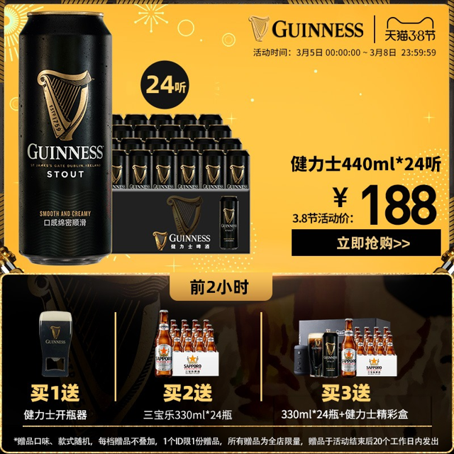 这款健力士 司陶特啤酒,爱尔兰原装进口,口感浓郁醇厚 绵密顺滑 风味最佳的温度是5℃。内附气囊黑科技,每一次开关都能制造美妙的气泡涌浪与绵密的泡沫,视觉享受的同时,也带动起激情的气氛。