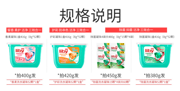 拍380g,除菌、抑菌、洁净三效合一 除菌凝珠1盒416g (8g*52颗)