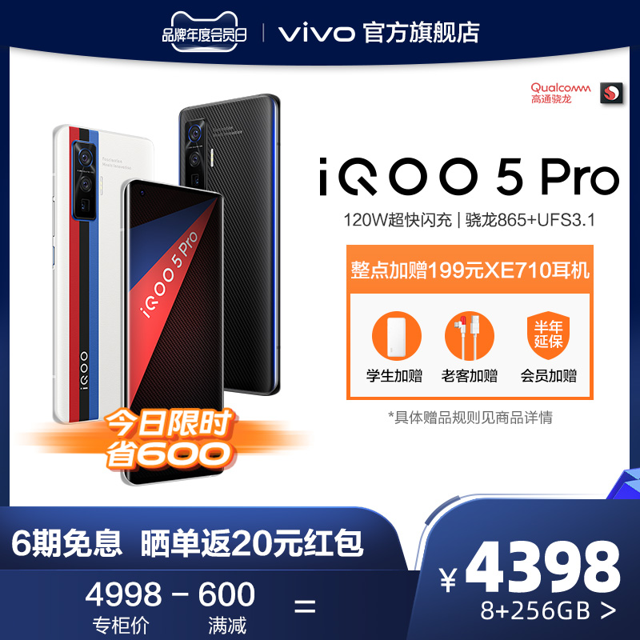 天猫vivo官方旗舰店目前售价4998元,参加满3000元减600元活动,实付到手价4398元包邮。搭载骁龙865处理器,120Hz刷新率,双曲面设计,120W超快闪充,感兴趣的买买可以关注一下~