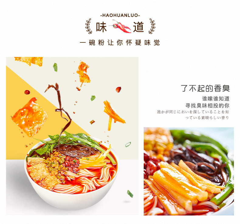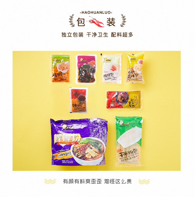 螺蛳粉是广西的传统小吃,具有辣、爽、鲜、酸、烫的独特风味。好欢螺一直口碑不错,螺蛳粉届扛把子。选料正宗,香辣可口,粉也是劲道有嚼劲。此款螺蛳粉为水煮型,内有丰富配料:卤水螺丝肉包、花生腐竹包、萝卜酸豆角包、黄花菜木耳包、酸笋包、酸醋包、红油包~