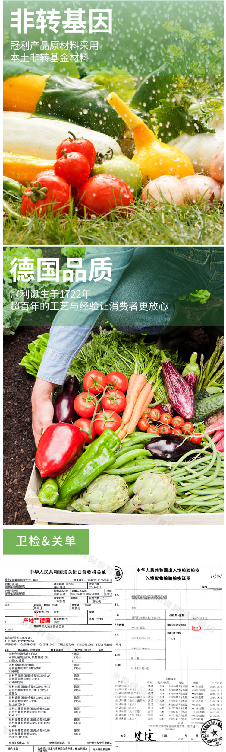 冠利是的德国的大品牌,是欧洲最大的食醋、黄瓜和芥末的生产者,有300多年历史,1876年开始成为皇室的指定供应商。