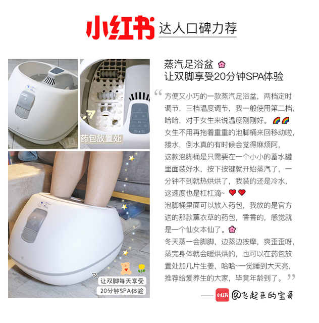 这款蒸熏足浴盆在最近大火的《乘风破浪的姐姐》和《三十而已》上都有出现,使很多明星都在用的同款,全新一代蒸汽足浴盆,搭载蒸汽熏蒸创新技术,摒弃传统泡脚加倒水麻烦,长久浸泡皮肤发白腐烂等问题,让双脚享受蒸桑拿般的高级体验。