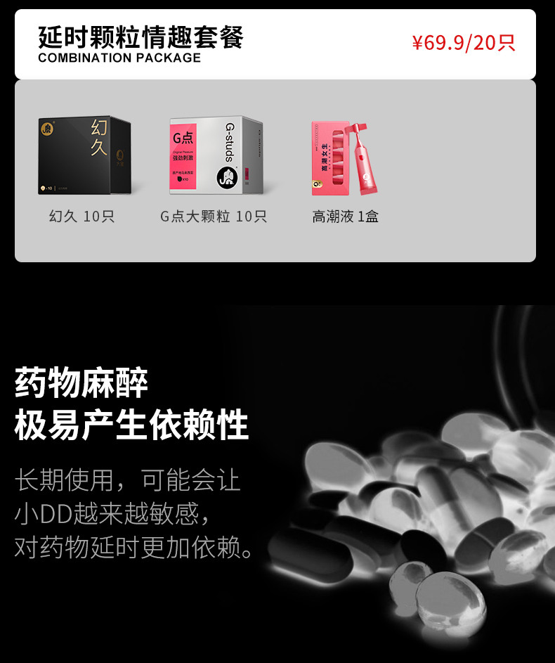 第三款,延时颗粒 20只,幻久 10只装+G点大颗粒 10只装+幻久湿巾;