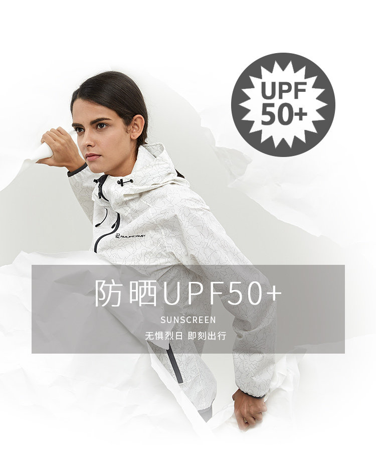 这件冲锋衣还支持UPF 50+的50倍防晒。UPF值是防紫外线系数,UPF值为40,即只有1/40的紫外线可以穿透,俗称「40倍防晒」。UPF值从10 到50 ,UPF>50时,标为UPF 50 ,此时紫外线对人的影响可忽略不计,所以UPF值最高就是UPF 50 。国标GB/T 23147-2008要求,UPF40 起,才可宣传自己是防晒服。